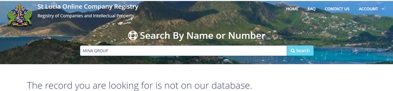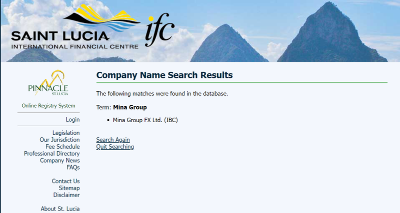 Although MINA GROUP is registered in Saint Lucia, a search of the Saint Lucia online company registry did not reveal an entity named “Mina Group Fx LTD.” Further checks with the International Financial Companies (IFC) registry identified a company with the same name. While registration in the IFC makes the entity legally existent, it does not automatically imply the company holds any financial services licenses.
