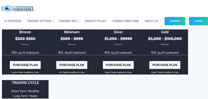 Lucretradecenter offers four investment plans: Bronze, Minimum, Silver, and Gold. Each plan promises different investment amounts and short-term returns: