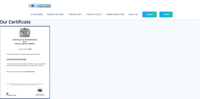 Regulatory Information of Lucretradecenter: Unverifiable Claims