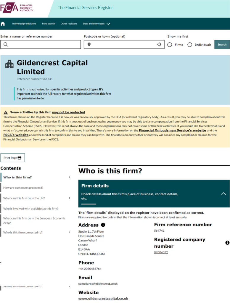 Research shows that Tosta Global Limited is fraudulently using the FCA registration of GILDENCREST CAPITAL LIMITED and is not regulated itself.