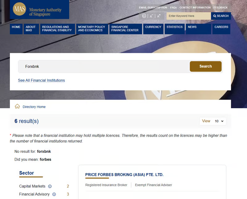 Based on available public information, there is no confirmed regulatory record found under the name Forxbnk in the MAS database.