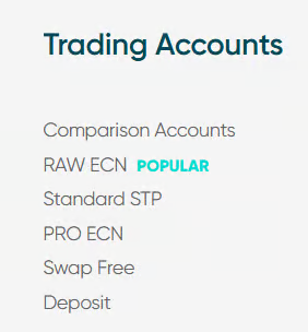 These labels suggest a structure where spreads, execution models, or swap policies may differ depending on the account selection.